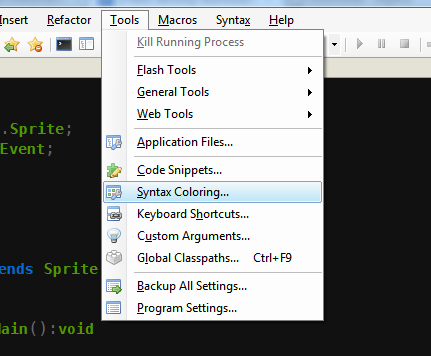 gyorsan állítsuk is át a már ismert tools> Syntax coloring alatt :