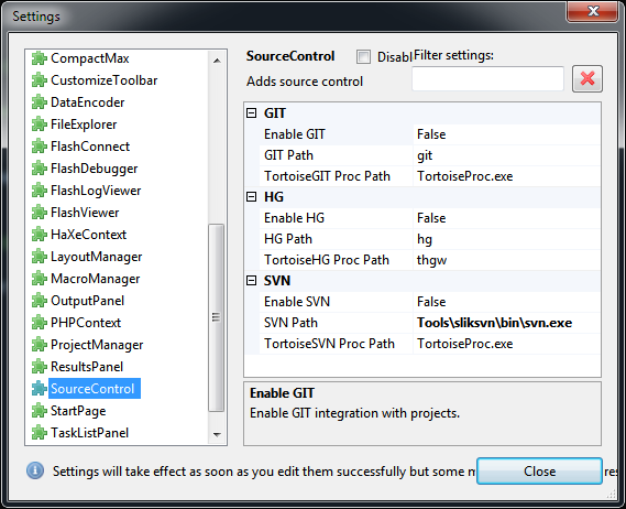 noha van gyári support a külső verziókezelők támogatására, az defaultból ki is van kapcsolva. a tools> program settings> Source Contol alatt lehet engedélyezni amire szükségünk van:
